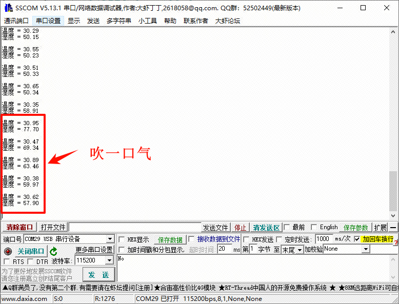printf("湿度 = %.2f\r\n", Get_Humidity() );
