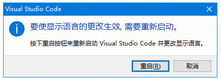 这个插件安装完成之后VSCode会在右下角提示你重启,点击Restart重启即可将界面变为中文!!