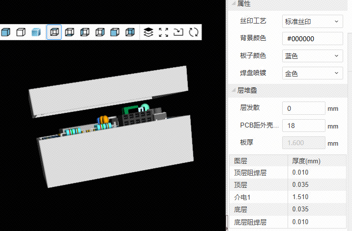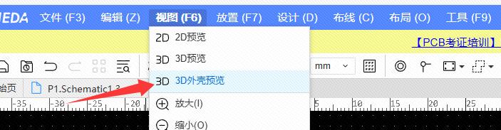 打开PCB后,在PCB界面开启3D外壳预览。会弹出新的界面。
