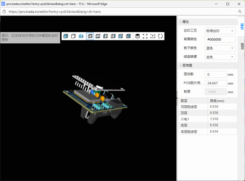 嘉立创EDA专业版支持简单的3D结构件设计:
