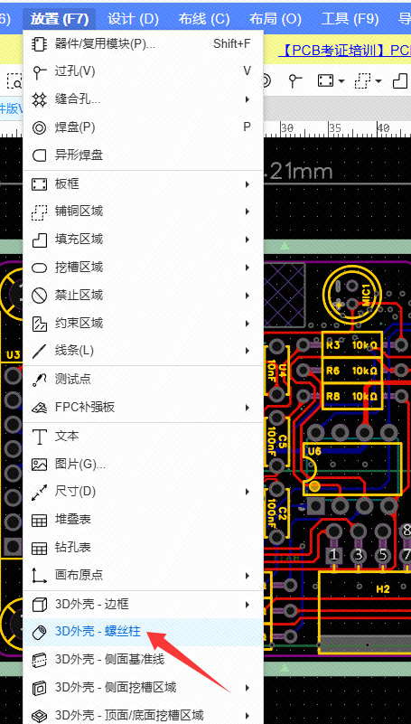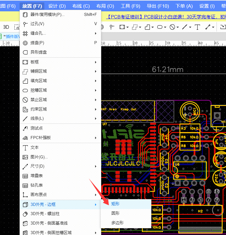 点击放置 -> 3D外壳-边框 -> 矩形。