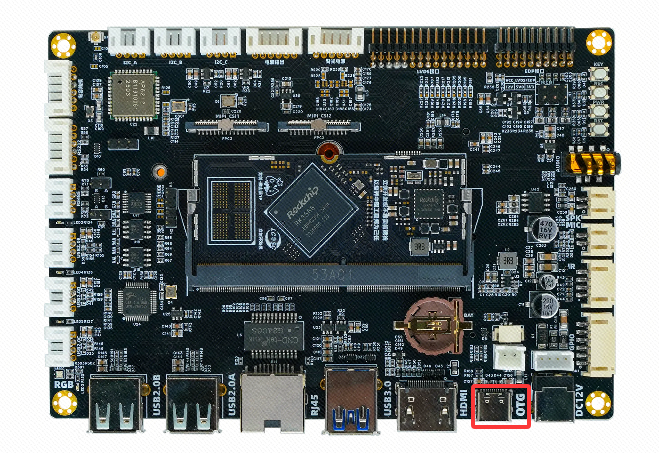 Type-c 线一端接电脑,另一端接底板的 OTG TYPE-C 接口。并确保 泰山派1F 正常进入系统。