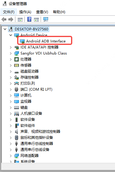 确保电脑设备管理器中能识别到了 ADB 设备。