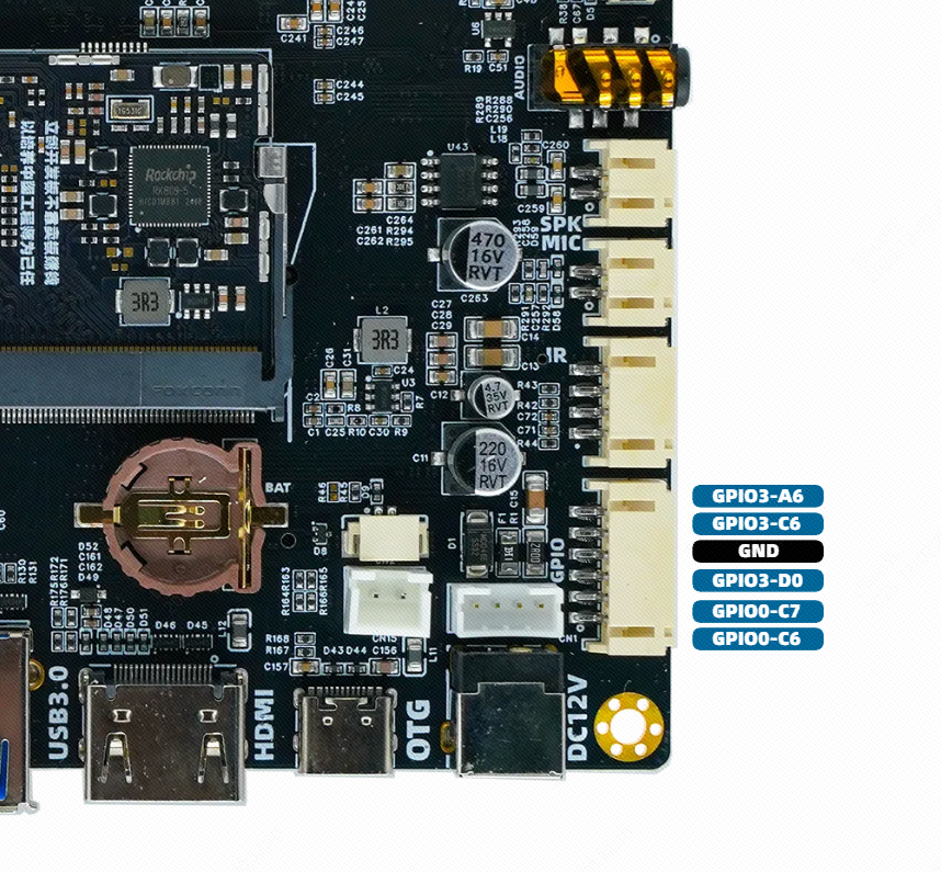 | GPIO3_A6 | 3 | 0 | 6 | 3×32 + 0×8 +6 = 102 | 102 |